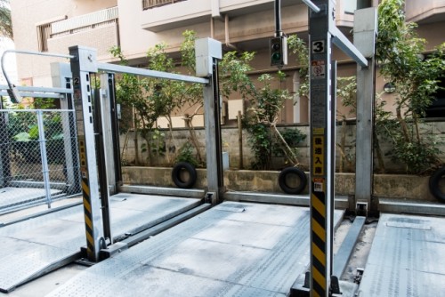 マンションなどで使われている機械式駐車場。