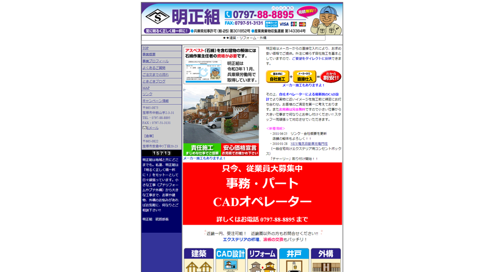 | 資格・許可 | 建築・解体業:兵庫県知事許可(般-20)第301852号|産業廃棄物:兵庫07100143384号大阪02803143384号 |
