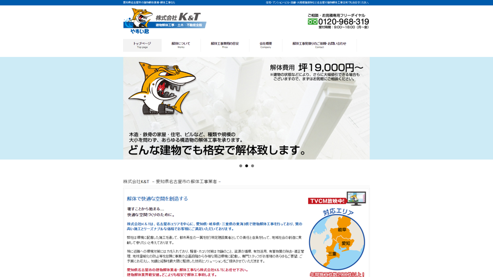 | 資格・許可 | 建築・解体業:愛知県知事許可(般-3)第110446号愛知県知事(登-30)第3190号岐阜県知事(登-30)第422号三重県知事(登-30)第12-166号|産業廃棄物:愛知県第02300218839号岐阜県第02100218839号三重県第02400218839号 |