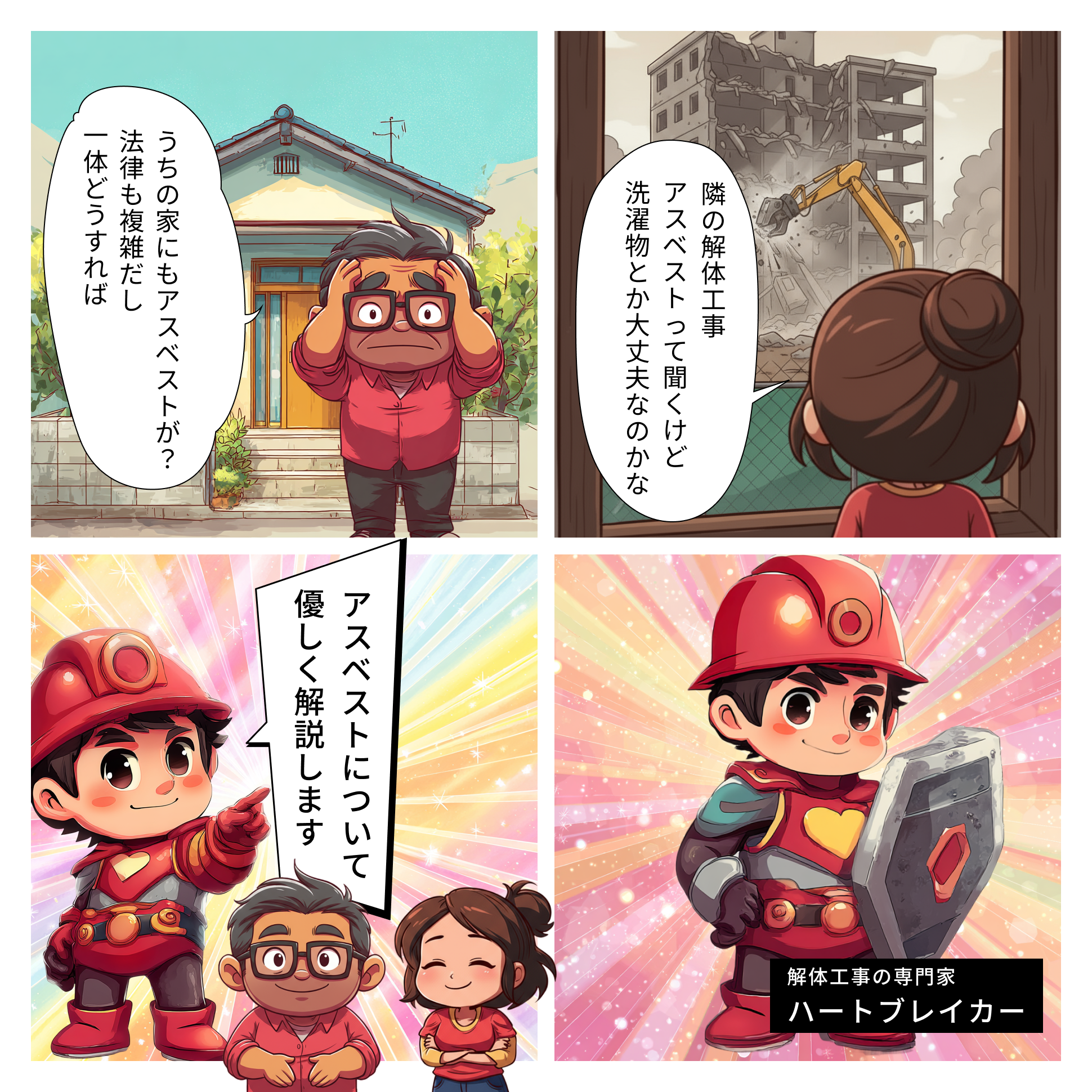 「解体工事」と「アスベスト」。この2つの言葉が結びつくと、私たちの心には様々な「心配」が生まれます。そして、その心配の形は、あなたの置かれた立場によって全く違うものになるのではないでしょうか。