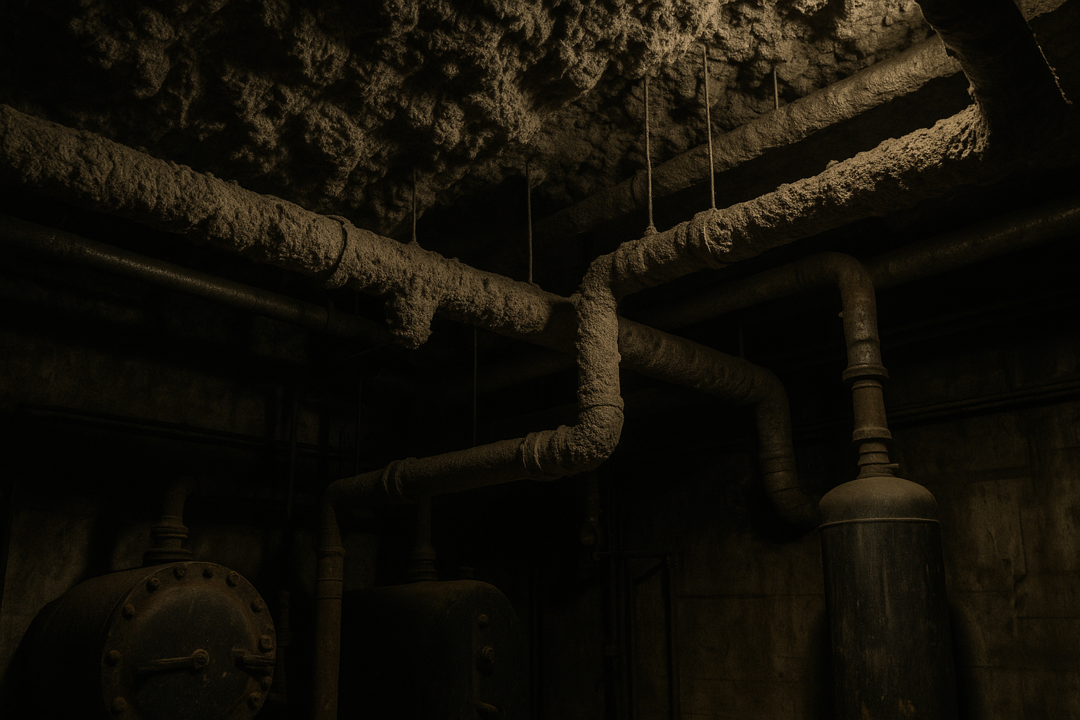 綿状のアスベストを直接吹き付けたもので、少しの衝撃でもアスベスト繊維が大量に飛散する最も危険な状態です。解体・除去作業は、作業場所を完全に隔離し、作業員も専用の防護服を着用するなど、最も厳重な管理下で行われます。