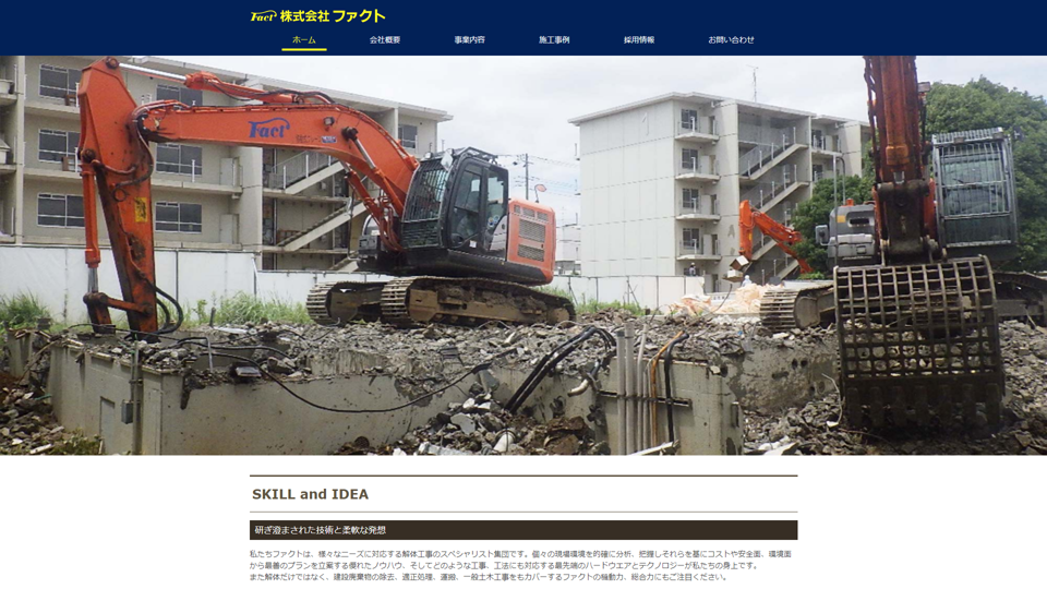 | 資格・許可 | 建築・解体業:国土交通大臣許可(特-30)第20312号|産業廃棄物: |