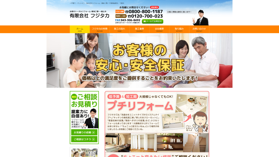 | 資格・許可 | 建築・解体業:千葉県知事許可(般-30)第48589号|産業廃棄物:第01200200114号 第01250200114号 第13-00-200114号 第13-50-200114号 |