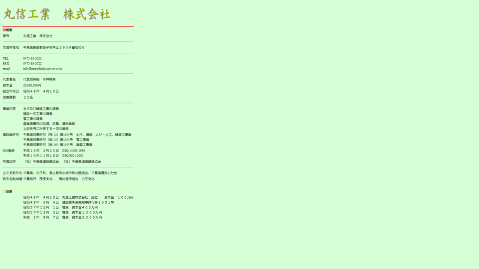 | 資格・許可 | 建築・解体業:千葉県知事許可(特-14)第1651号土木、建築、とび・土工、舗装工事業 千葉県知事許可(般-14)第1651号管工事業 千葉県知事許可(般-16)第1651号造園工事業|産業廃棄物: |