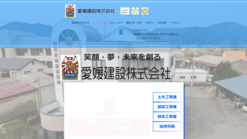 | 資格・許可 | 建築・解体業:愛媛県許可番号/許可(般-3)第9402号|産業廃棄物:愛媛県許可番号/第03814046343号 |