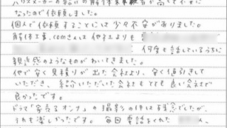 他で安く見積りが出た会社より、安く値引きしていただき、紹介いただいた会社もとても良い会社で良かったです。 他で安く見積りが出た会社より、安く値引きしていただき、紹介いただいた会社もとても良い会社で良かったです。