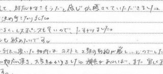 「今回お手伝い頂いた物件は、コストと工期の制約が厳しいものでしたが、誠実に対応頂き、大変助かりました。」
