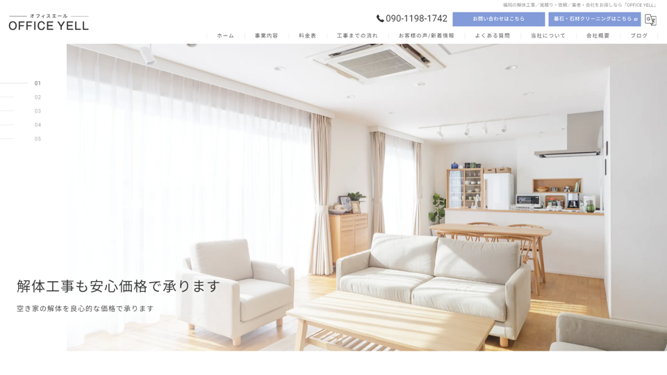| 資格・許可 | 建築・解体業:福岡県知事許可(般-26)第104519号|産業廃棄物:福岡県第04000151594号佐賀県第04101151594号 |