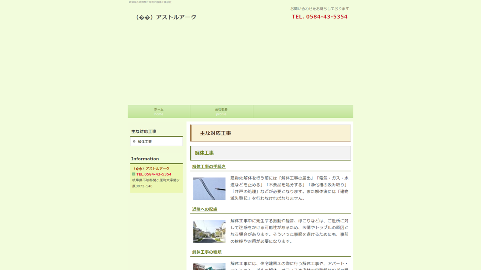 | 資格・許可 | 建築・解体業:岐阜県知事許可第201277号|産業廃棄物: |