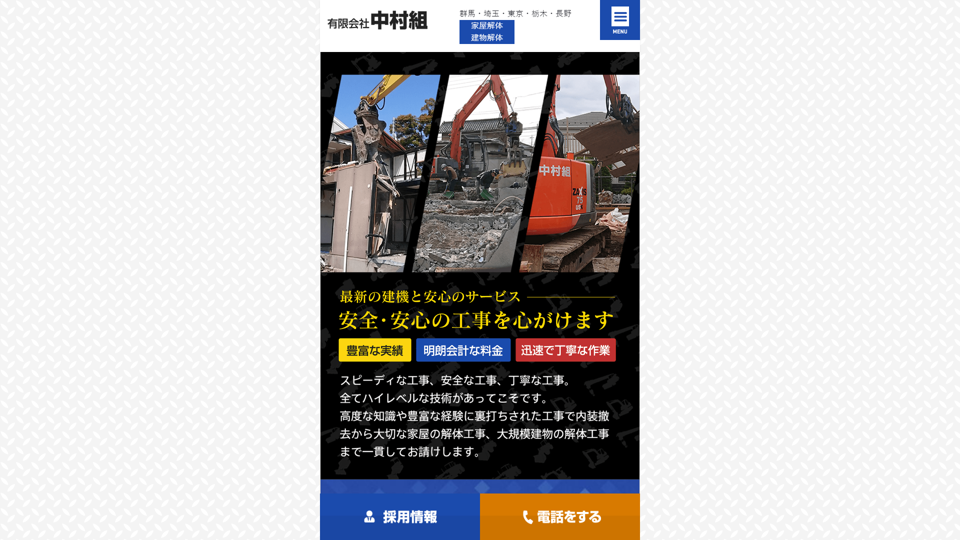 | 資格・許可 | 建築・解体業:群馬県知事許可(特・般-03)第3177号|産業廃棄物:群馬県知事許可第1000013460号 |