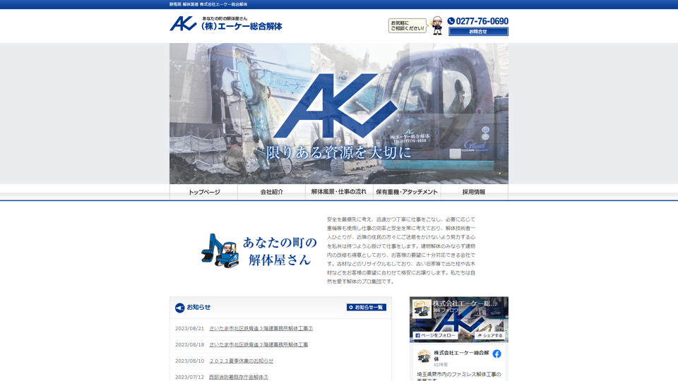 | 資格・許可 | 建築・解体業:群馬県知事許可(般―27)第22471号|産業廃棄物: |