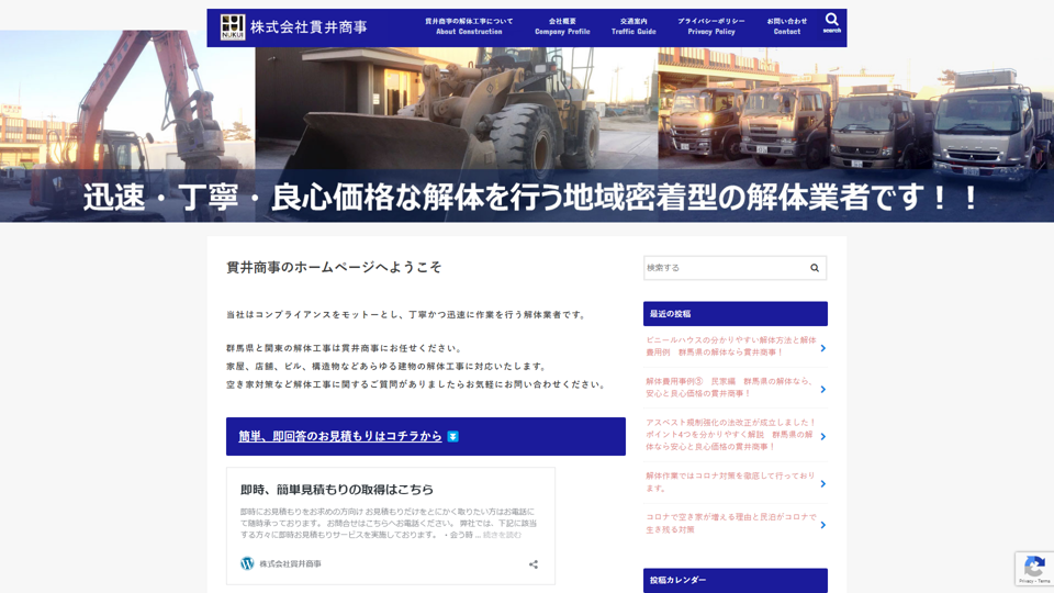 | 資格・許可 | 建築・解体業:群馬県知事許可第01000187851号|産業廃棄物: |