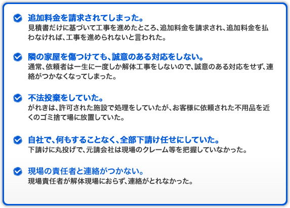 下の例は、 悪質な解体業者に頼んでしまって、トラブルになってしまった例です。