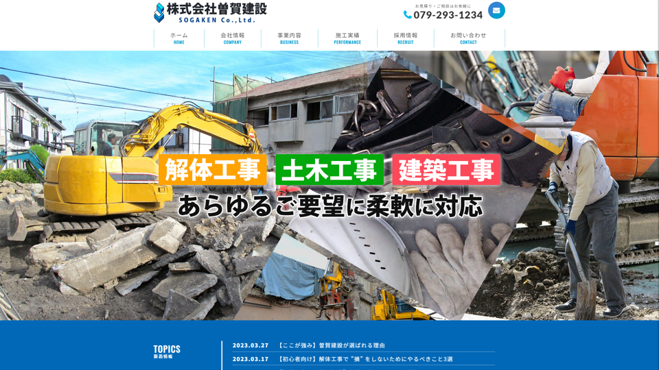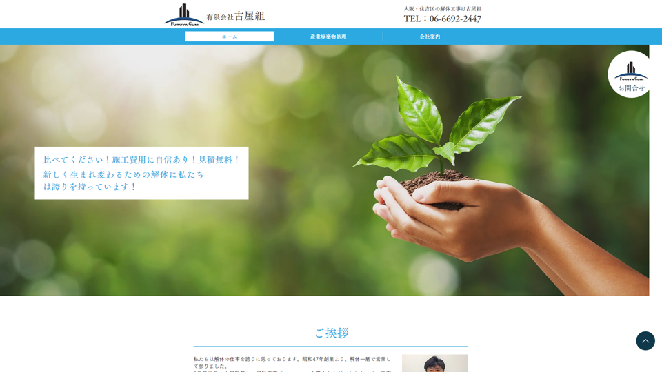 | 資格・許可 | 建築・解体業:建設業許可許可(般-30)第254012号|産業廃棄物:産業廃棄物収集運搬業(第02805141314号) |