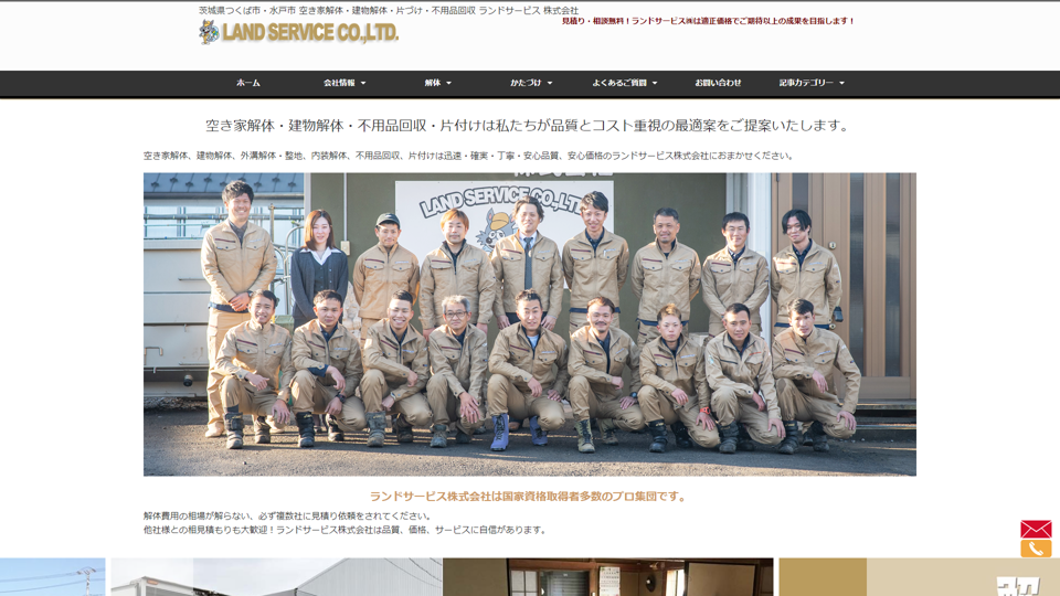 | 資格・許可 | 建築・解体業:茨城県知事許可番号00801006771|産業廃棄物:茨城県知事許可整理番号13421006771 |
