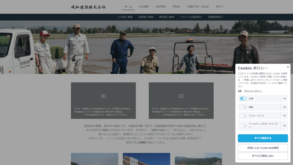 | 資格・許可 | 建築・解体業:岩手県知事許可(特-3)第40247号|産業廃棄物:許可番号00302158553許可番号00322158553 |