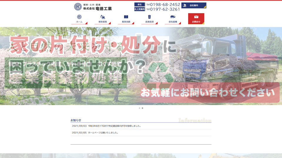 | 資格・許可 | 建築・解体業:岩手県特・般110045号|産業廃棄物: |