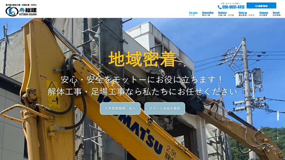 資格・許可建築・解体業:香川県(般-30)第8508号香川県(般-28)第8508号|産業廃棄物:香川県第0371515910号