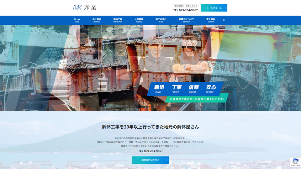 | 資格・許可 | 建築・解体業:鹿児島県知事許可(登-5)第562号|産業廃棄物: |