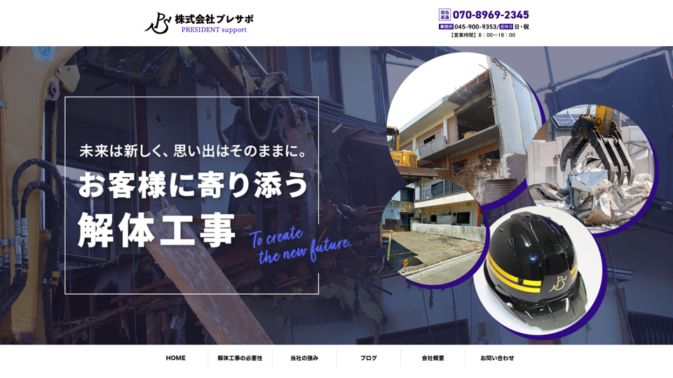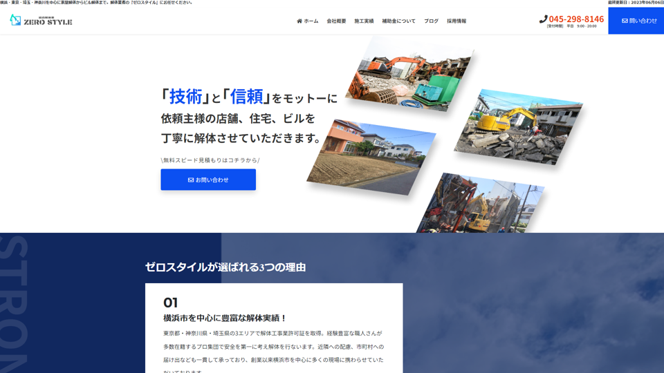 | 資格・許可 | 建築・解体業:解体工事事業者登録(東京・神奈川)|産業廃棄物:産業廃棄物収集運搬許可(東京・神奈川) |