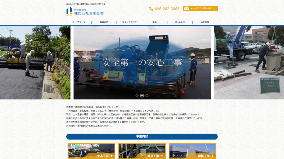 | 資格・許可 | 建築・解体業:熊本県知事許可(特-2)第5146号|産業廃棄物: |
