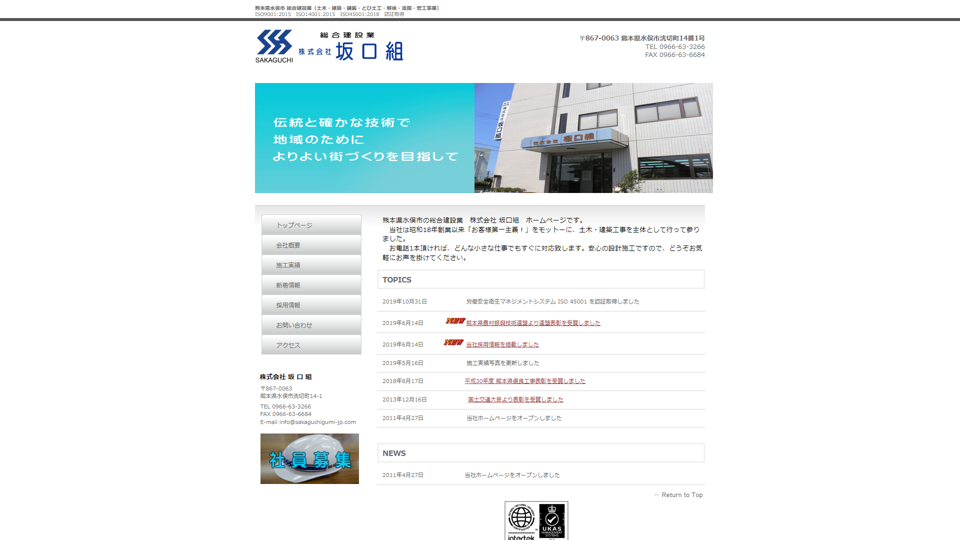 | 資格・許可 | 建築・解体業:熊本県知事許可(特-1)第810号|産業廃棄物:熊本県知事許可(特-1)第810号 |