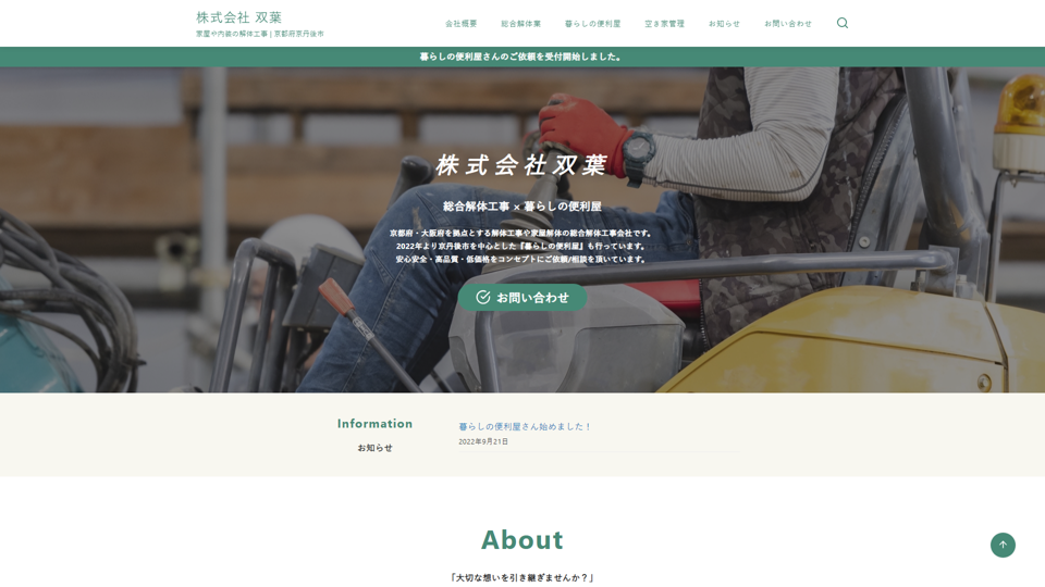 | 資格・許可 | 建築・解体業:京都府知事許可(般-28)第12633号|産業廃棄物: |