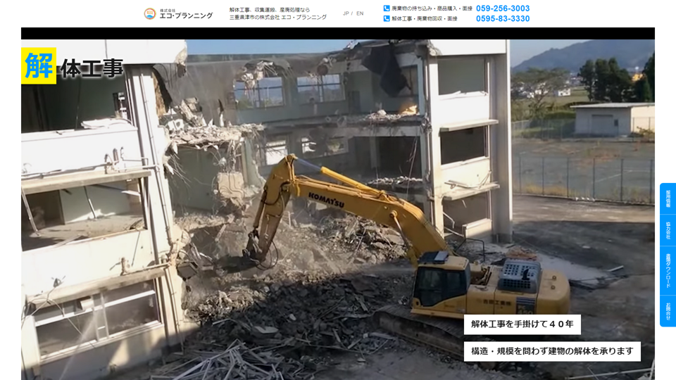 | 資格・許可 | 建築・解体業:三重県知事許可第023130号|産業廃棄物:産業廃棄物収集運搬許可第02403195587号第02300195587号第03000195587号 |