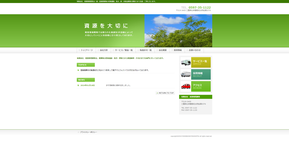 | 資格・許可 | 建築・解体業:三重県(登-2)第10-5号和歌山県(登-2)第9-19号|産業廃棄物:三重県第02419002058号滋賀県第02501002058号京都府 第02600002058号愛知県 第02300002058号山口県 第03500002058号和歌山県 第03000002058号大阪府 第02700002058号奈良県 第02900002058号 |