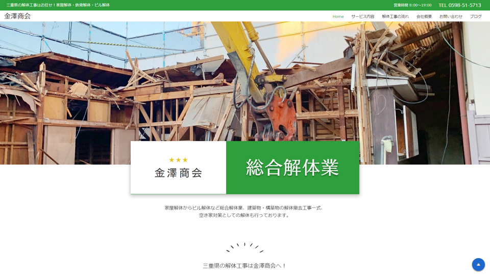 | 資格・許可 | 建築・解体業:三重県知事許可(般-)第13955号|産業廃棄物:産業廃棄物収集運搬第02406061378号 |