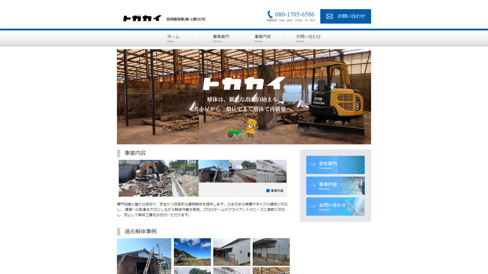 | 資格・許可 | 建築・解体業:宮崎県知事(登-4)第292号|産業廃棄物: |