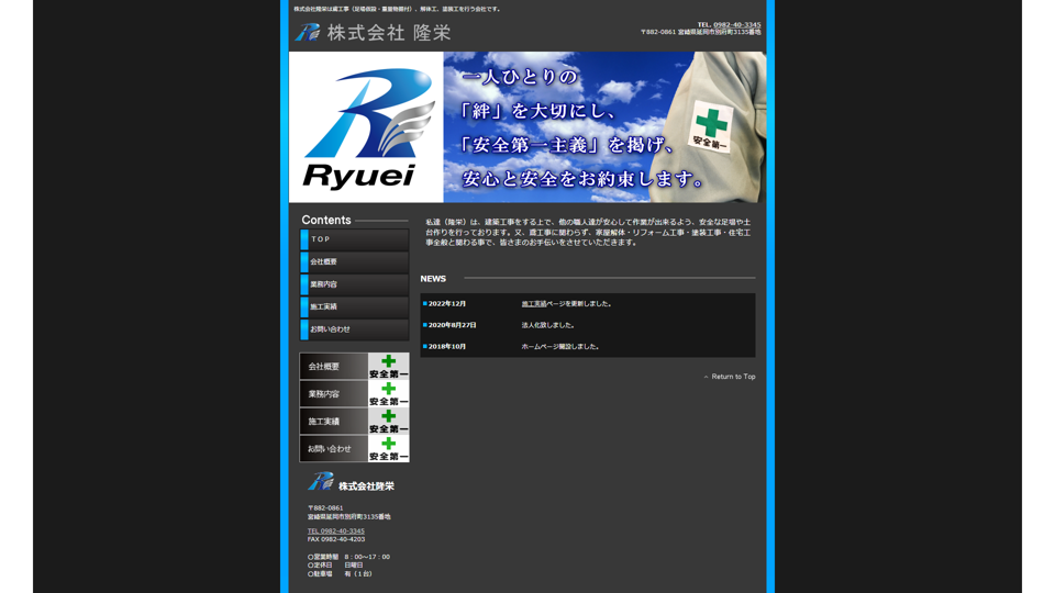 | 資格・許可 | 建築・解体業:宮崎県知事許可(般・4)第390号|産業廃棄物:産業廃棄物収集運搬業の許可番号第04508005685号 |