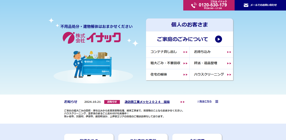 | 資格・許可 | 建築・解体業:一般建設業長野県知事許可(般-4)第24418号|産業廃棄物:長野県産業廃棄物収集運搬業許可2008137941山梨県産業廃棄物収集運搬業許可01900137941 |