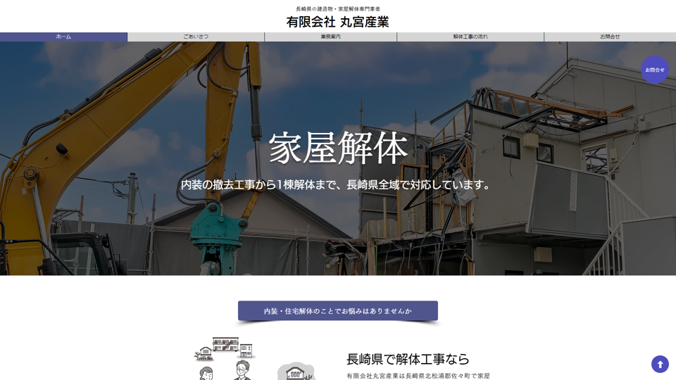 | 資格・許可 | 建築・解体業:長崎県知事許可(般-19)第4722号|産業廃棄物: |