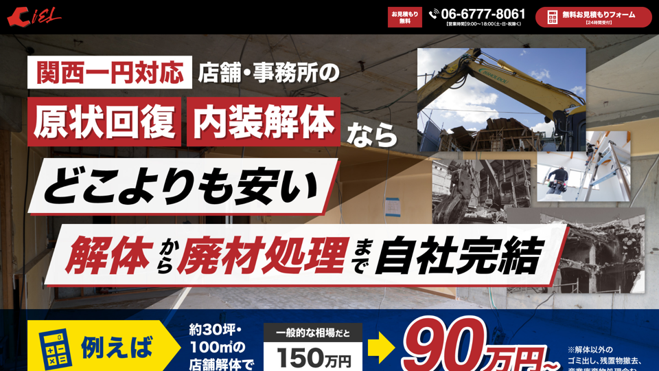 | 資格・許可 | 建築・解体業:大阪府知事(特-30)150296|産業廃棄物: |