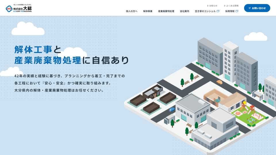 | 資格・許可 | 建築・解体業:大分県知事許可(般-30)第13629号|産業廃棄物: |