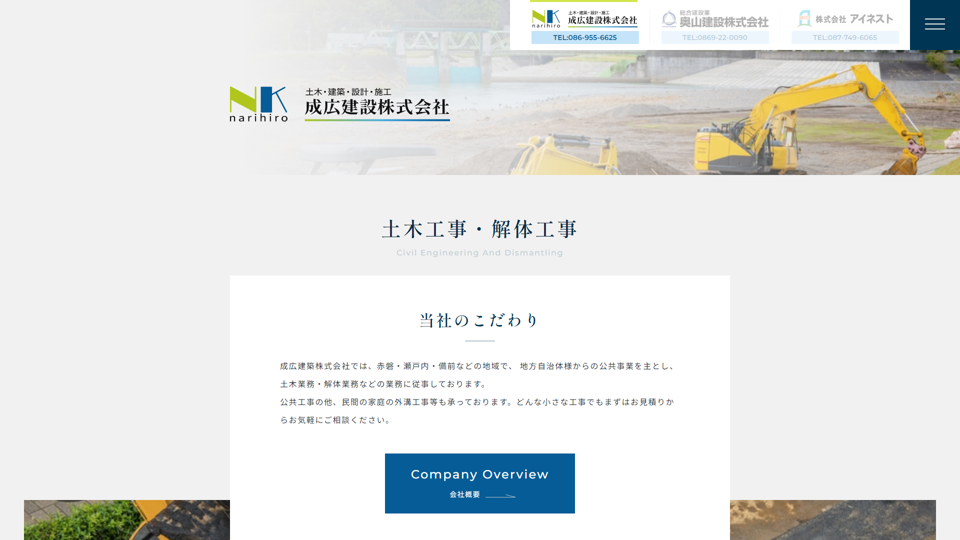 | 資格・許可 | 建築・解体業:岡山県知事許可(特-27)第13079号|産業廃棄物: |