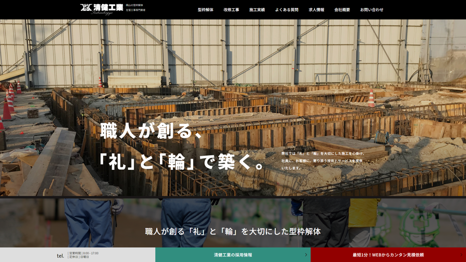 | 資格・許可 | 建築・解体業:岡山県知事許可(般-2)第21986号|産業廃棄物: |