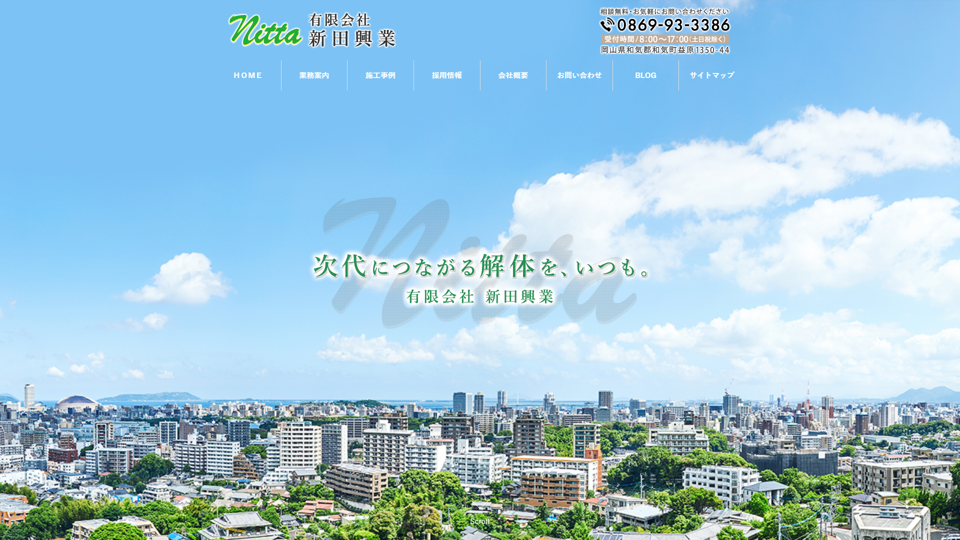 | 資格・許可 | 建築・解体業:岡山県知事許可(般-4)第10131号|産業廃棄物:岡山県第3309084965号 |