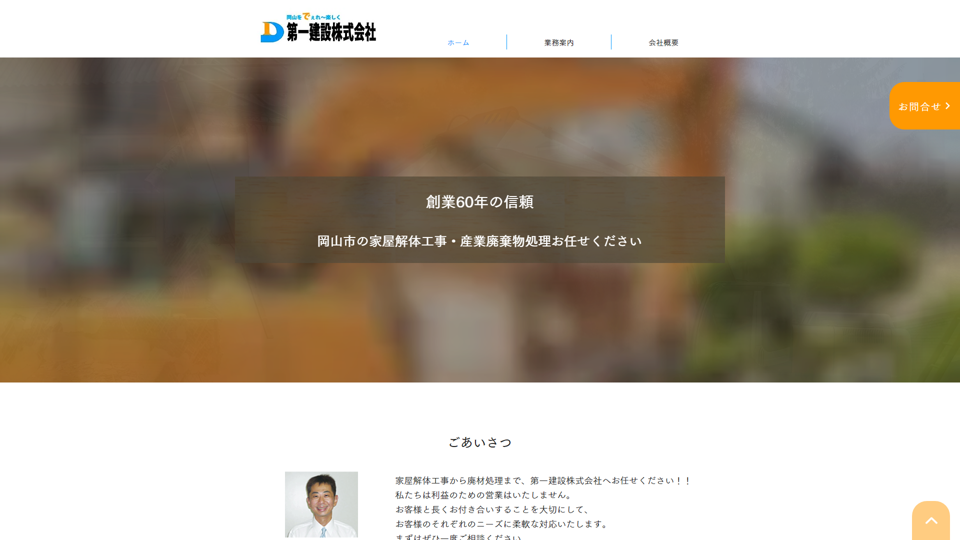 | 資格・許可 | 建築・解体業:岡山県知事(登-28)第372号|産業廃棄物: |