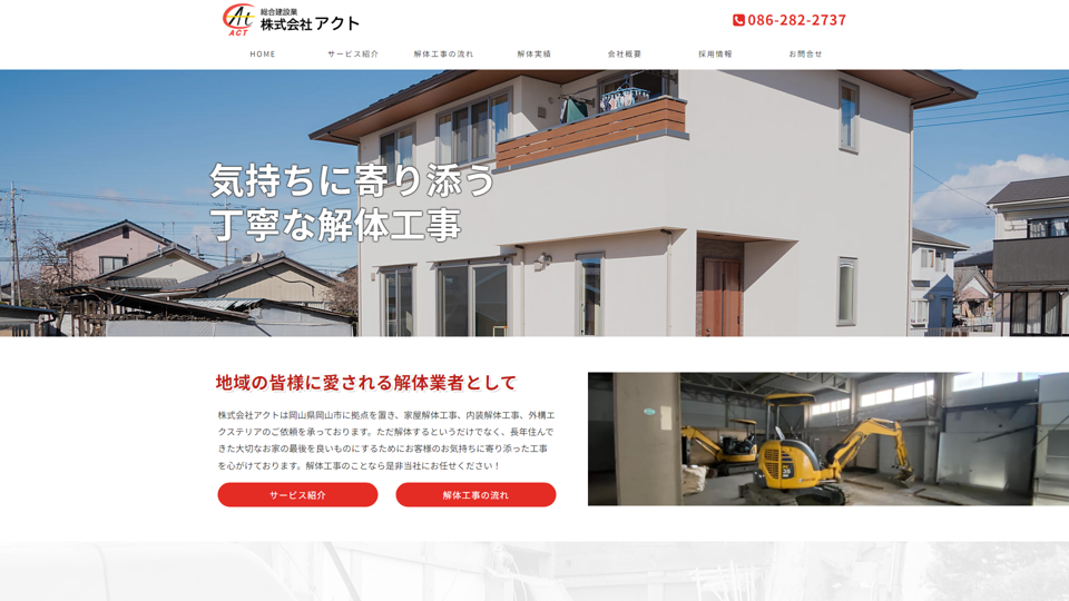 資格・許可建築・解体業:岡山県知事(登-1)第474号岡山県知事(般-3)第26461号|産業廃棄物:岡山県知事(登-1)第474号