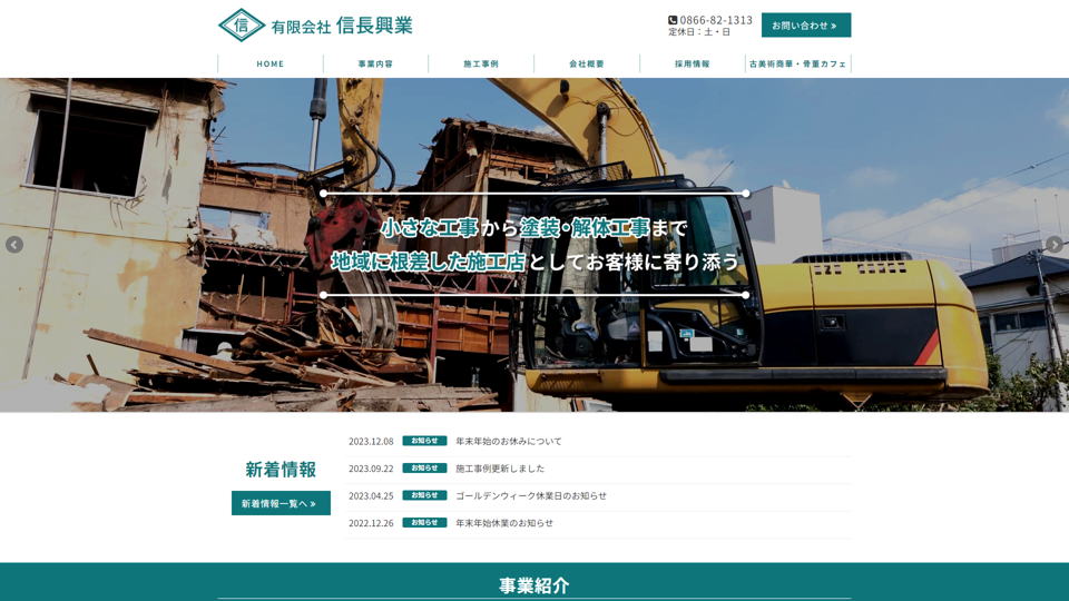 | 資格・許可 | 建築・解体業:岡山県知事許可(般-3)第19235号|産業廃棄物:岡山県第330408480号 |