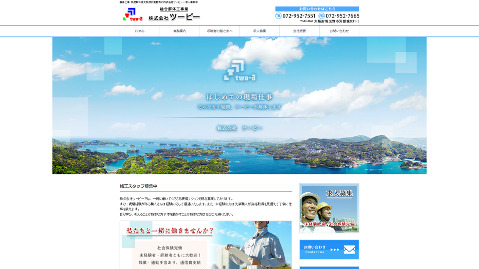 | 資格・許可 | 建築・解体業:大阪府知事許可(般-1)第153250号|産業廃棄物: |