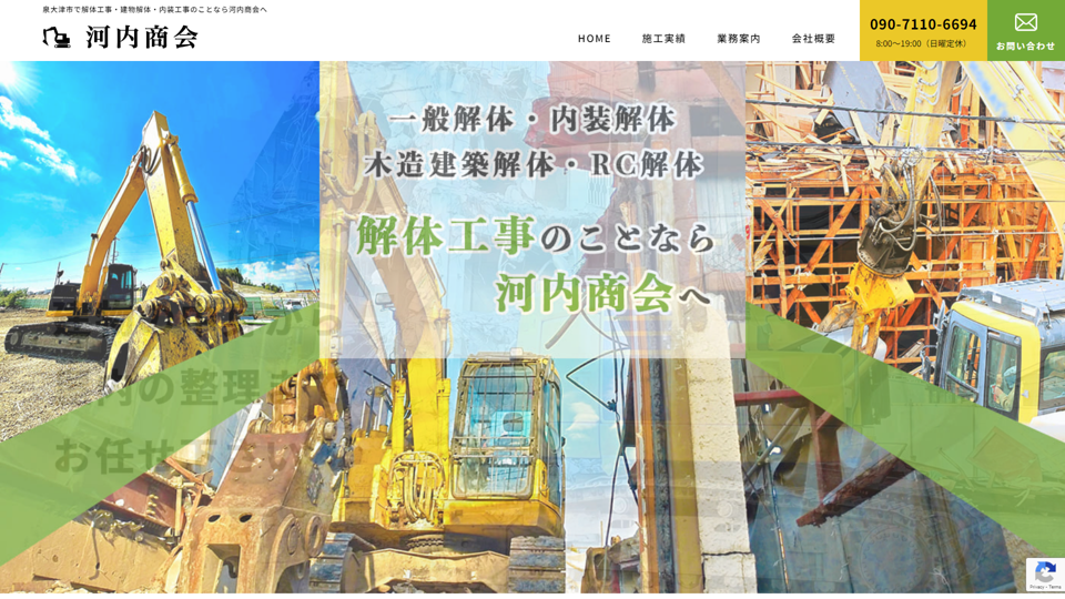 | 資格・許可 | 建築・解体業:大阪府知事許可(第126817号)|産業廃棄物:第02700050540号 |