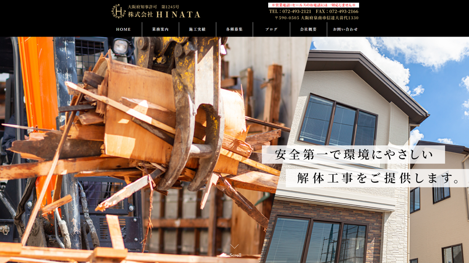 | 資格・許可 | 建築・解体業:大阪府知事許可第1245号|産業廃棄物: |
