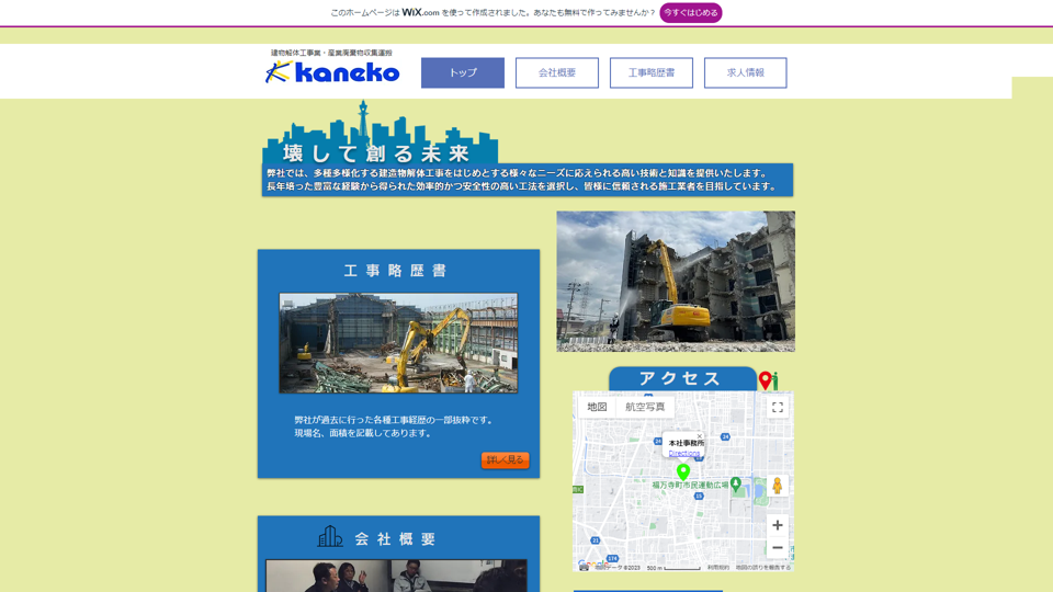 | 資格・許可 | 建築・解体業:大阪府知事許可(般-30)第130257号大阪府知事許可(般-4)第130257号|産業廃棄物: |