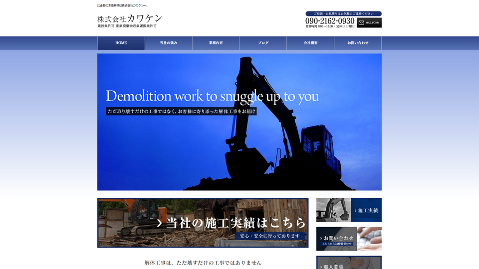 | 資格・許可 | 埼玉県知事許可(般‐5)第76934号とび・土木工事業・解体工事業 |