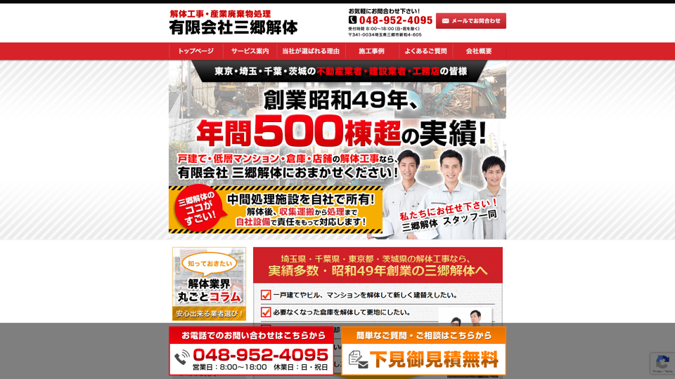 「埼玉県三郷市で解体工事したいけどどの業者がいいのだろう?」「おすすめの業者はないのかな?」とお悩みの方に向けて、埼玉県三郷市で安くておすすめの解体工事業社を紹介しています。