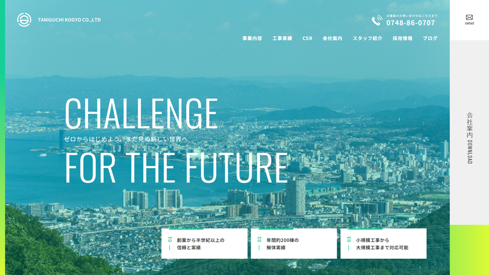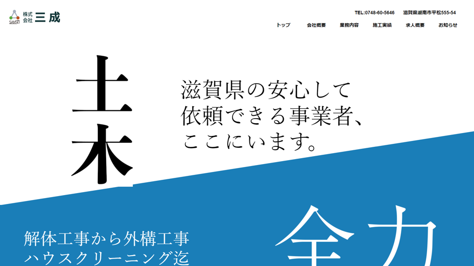 | 資格・許可 | 建築・解体業:滋賀県知事許可(特)第30621号|産業廃棄物:滋賀県許可第02500000231号三重県許可第02400000231号 |
