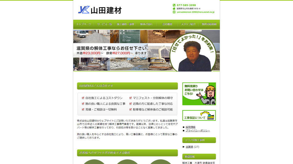 | 資格・許可 | 建築・解体業:滋賀県知事許可第195220号|産業廃棄物: |